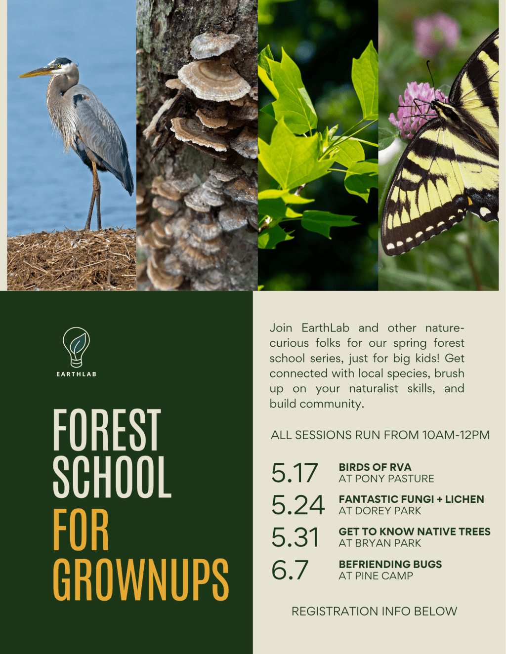Join EarthLab and other nature-curious folks for our spring forest school series, just for big kids! Because you’re never too old to play outside! Get connected with local species, brush up on your naturalist skills, and build community. Sign up below to join us for one, two, or all four!